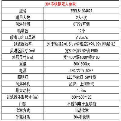不銹鋼風淋室由箱體、不銹鋼門(鋼板烤漆門或帶視窗的彩鋼板門)、粗效過濾器、高效過濾器、風機、靜壓箱、噴嘴聯(lián)鎖控制,工作面板,感應裝置等幾大部件組成。